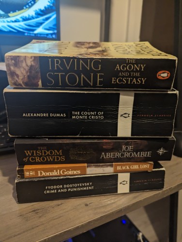 Crime and Punishment is my book of the year. A masterpiece, this novel was spectacular from top to bottom. The novel follows a man named Rodion Raskolnikov, who commits a terrible murder without any remorse. Still, throughout the story, Guilt starts to pour onto him so much that it drives him crazy. He then tries to find redemption through a remarkable woman named Sonya, hoping to save him. The novel was excellent because it also had a philosophical element that made me reflect more on specific subjects such as religion, death, morality, and more. The novel was an experience an experience you want to experience. Fyodor Dostoevsky is one of the greatest writers of all time and this novel definitely shows why.